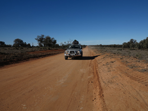 With rain imminent, we headed for Menindee on dirt roads, which turned more than tricky in 2" rain. Irvine's trick driving at no extra charge to the passengers. The road quickly turned to mud and we slithered and slid for 50km before finally escaping into. It was a scary enough experience, sometimes completely out of control and doing 180 degree turns.